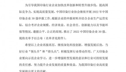 [Honor List] The list of the top 30 Chinese printing and dyeing enterprises in 2022 was announced